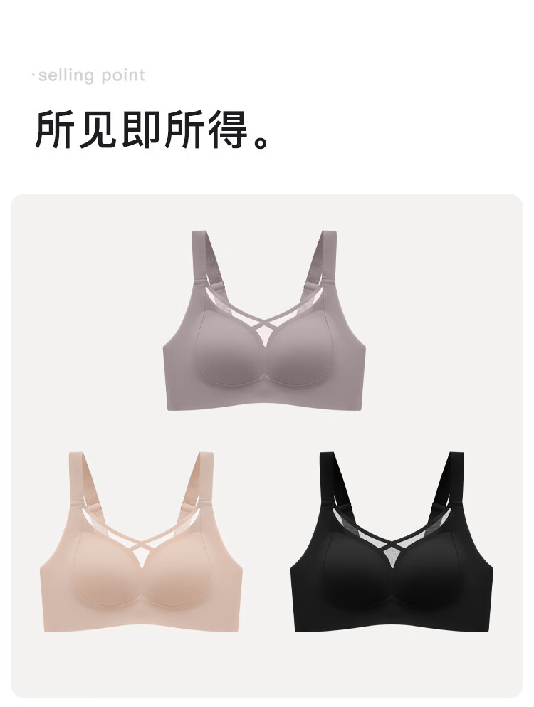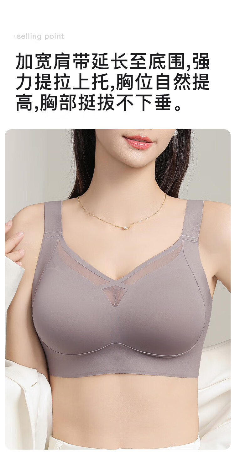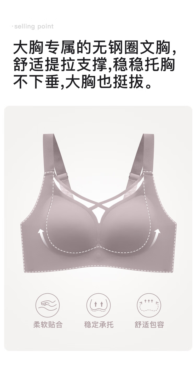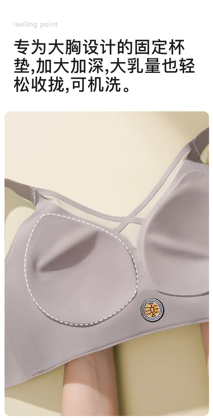 婷美无痕内衣女大胸显小胸聚拢运动无钢圈收副乳全罩杯薄款文胸罩