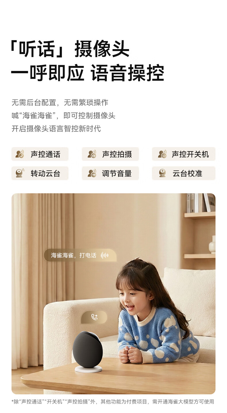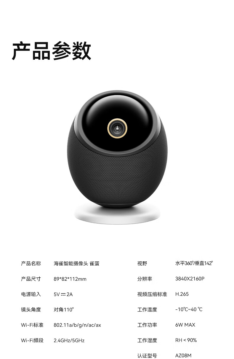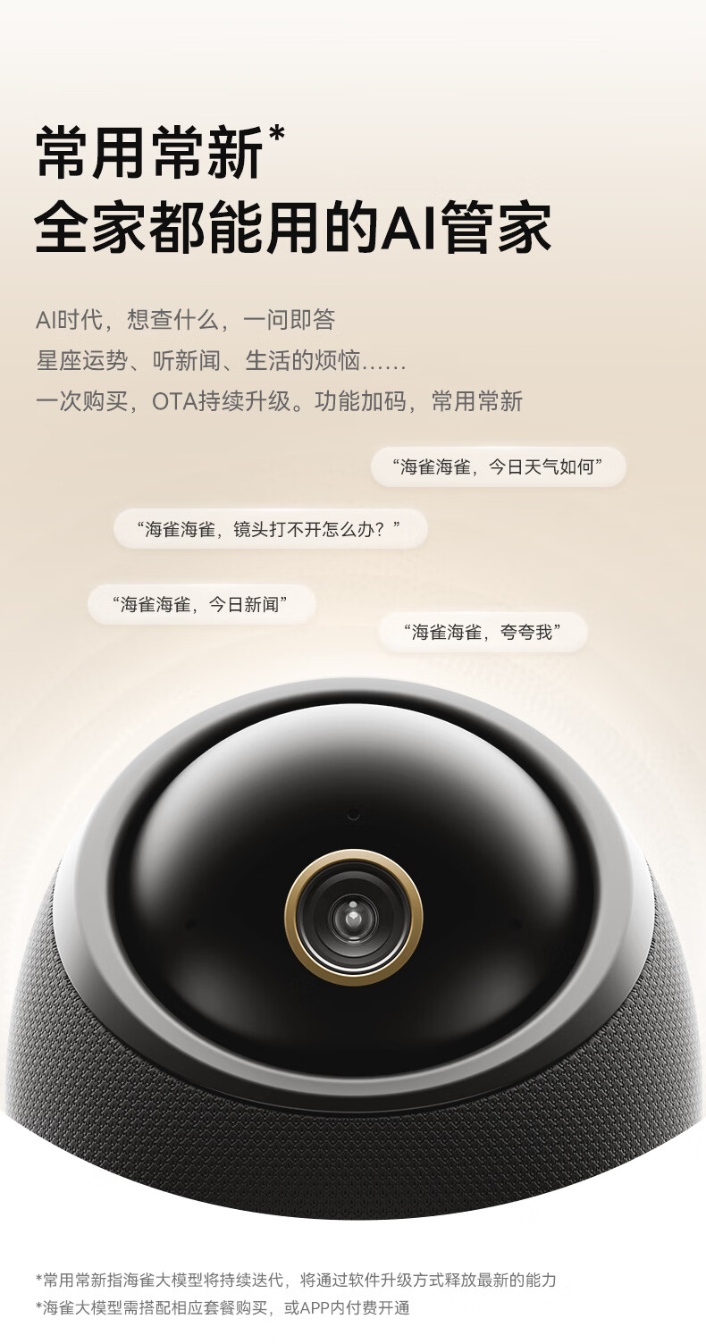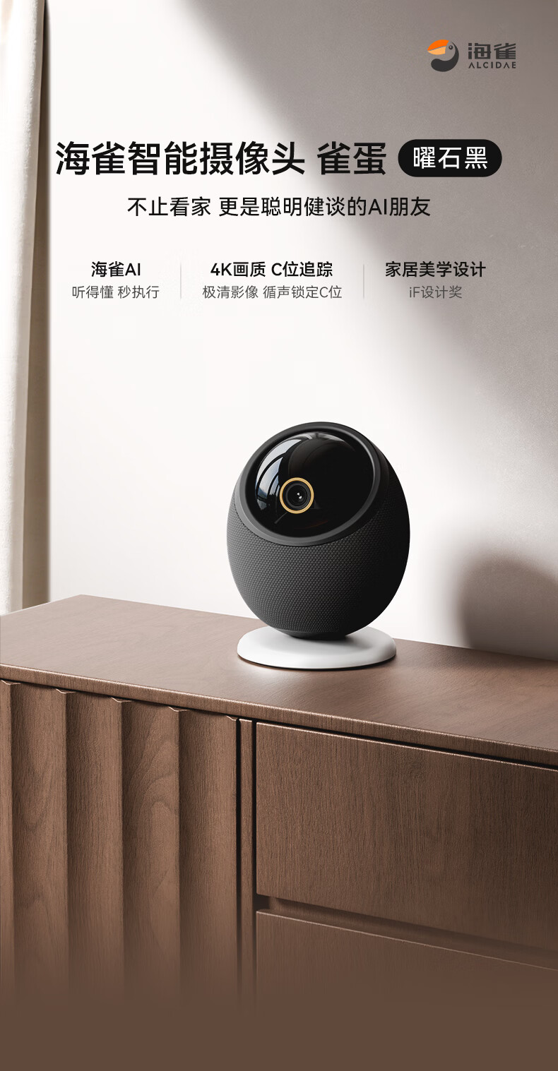 海雀800万摄像头监控家用360度无死角带夜视全景一呼即应母婴宠物室内看护AI具身智能语音鸿蒙智选雀蛋