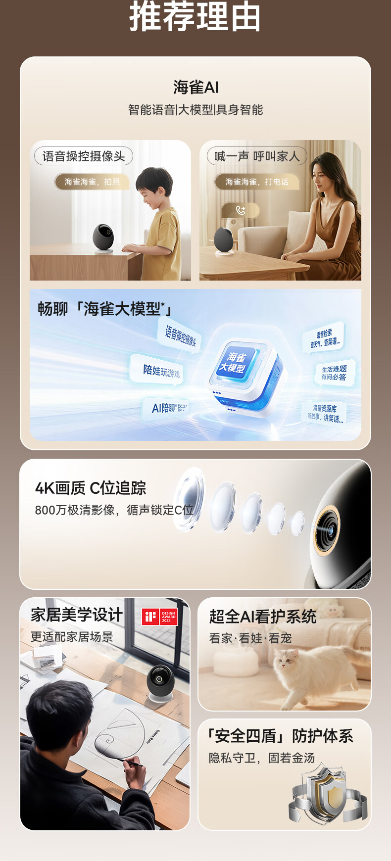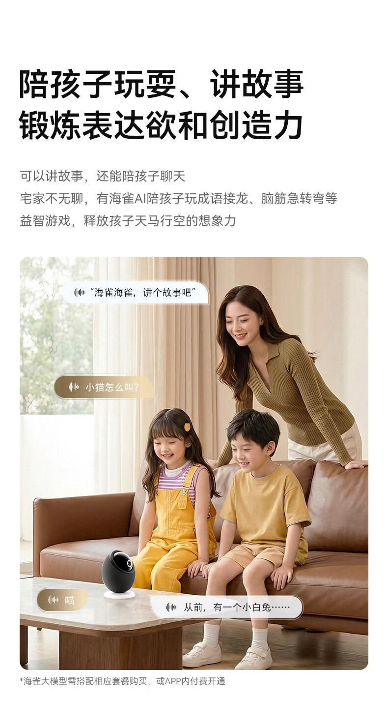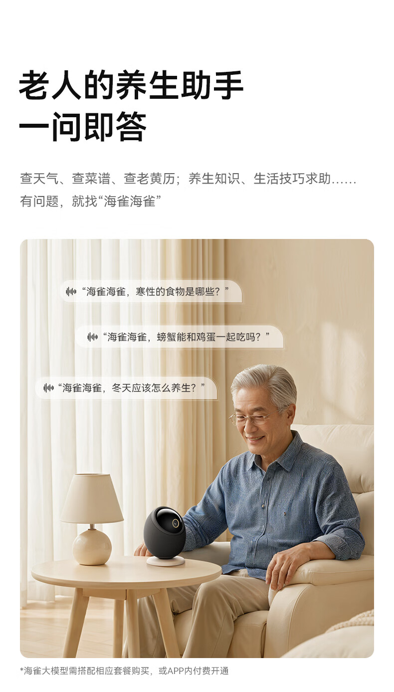 海雀800万摄像头监控家用360度无死角带夜视全景一呼即应母婴宠物室内看护AI具身智能语音鸿蒙智选雀蛋