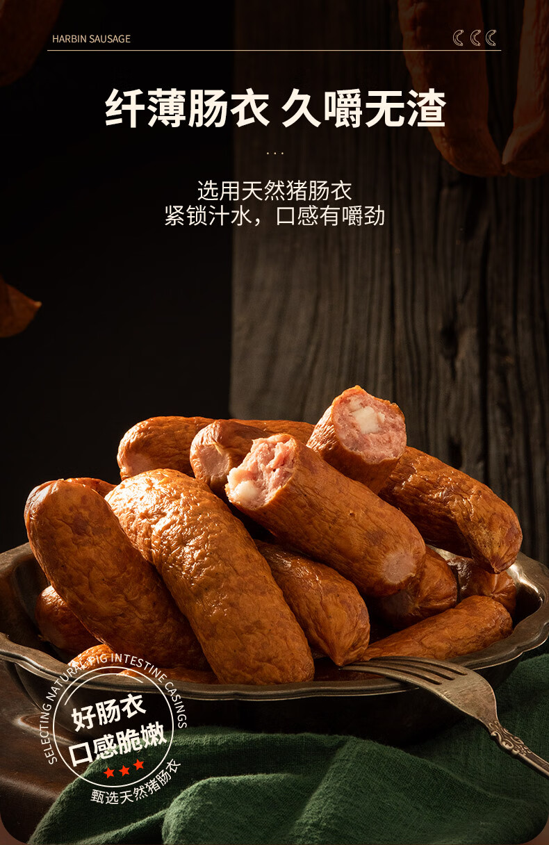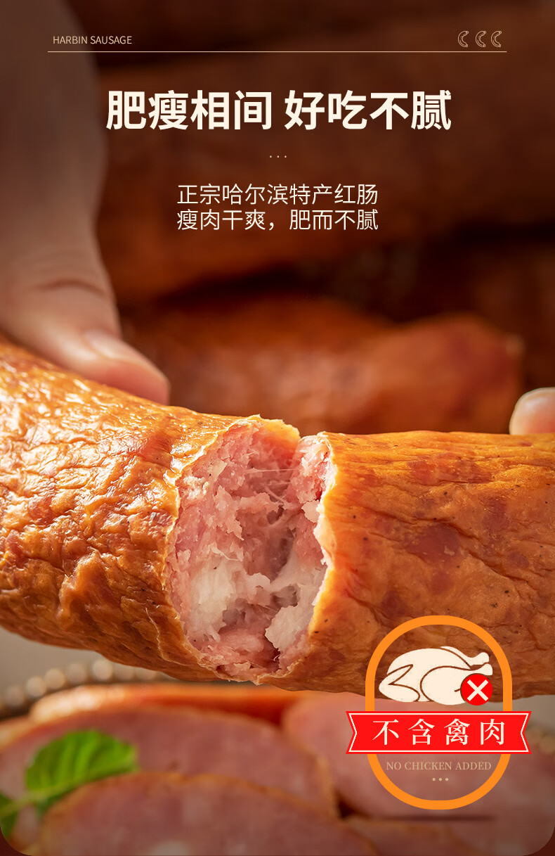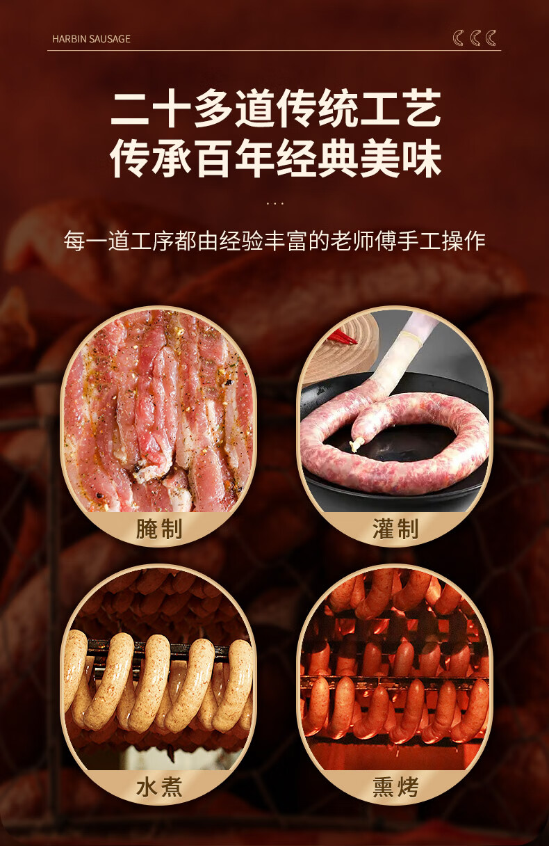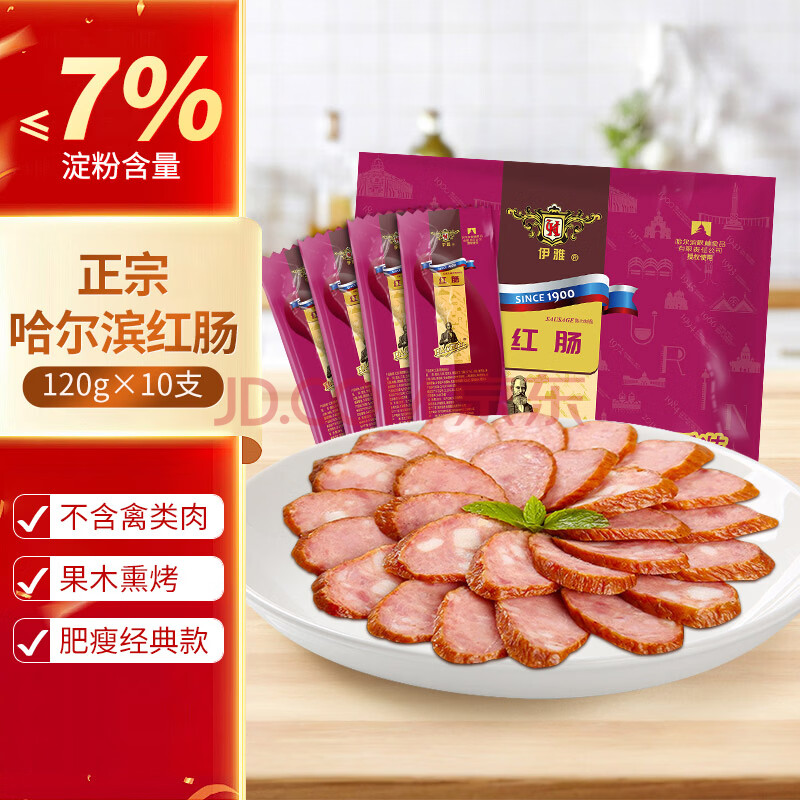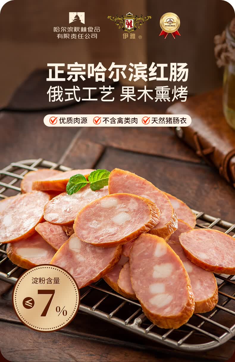 伊雅秋林食品公司哈尔滨红肠1.2kg/10支装 百年老字号 东北特产熟食