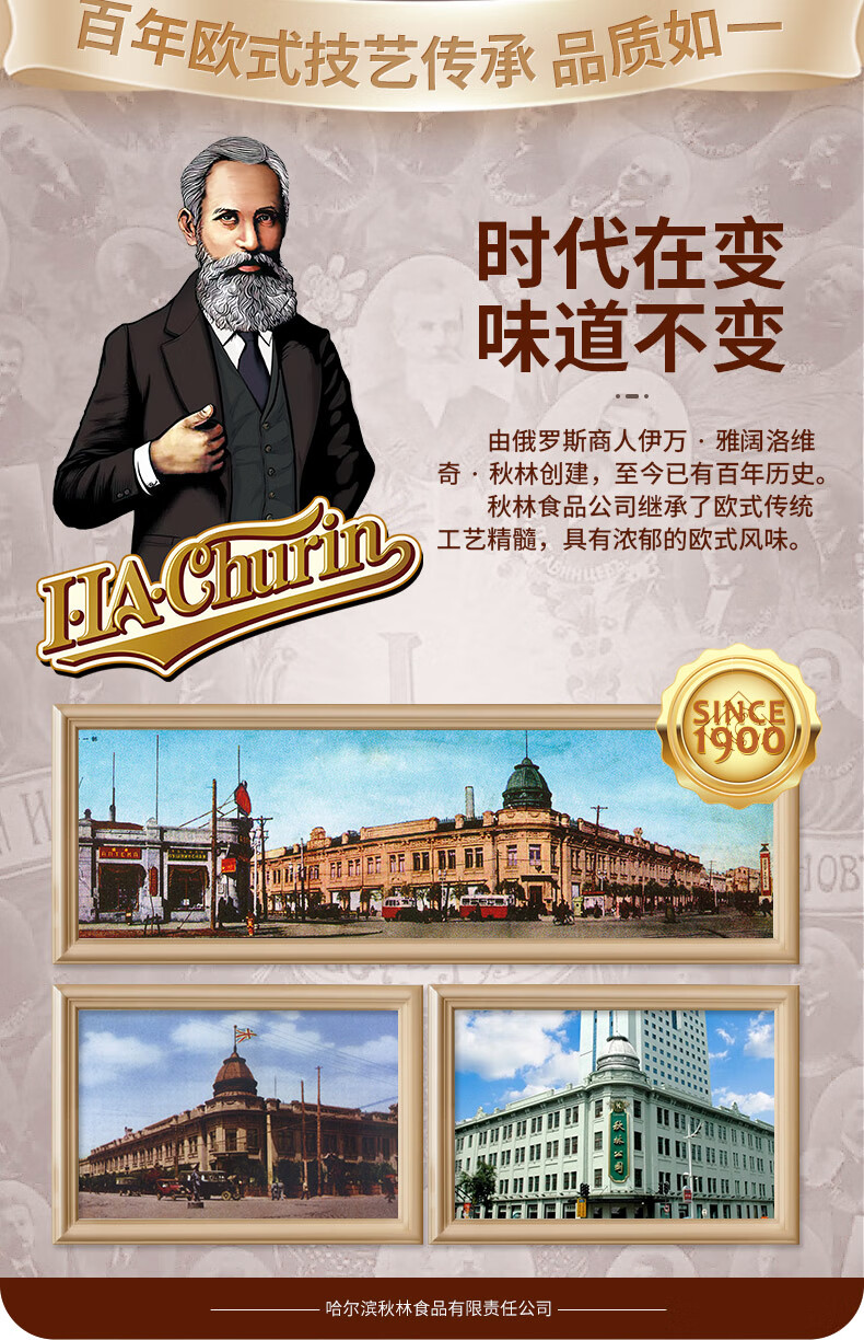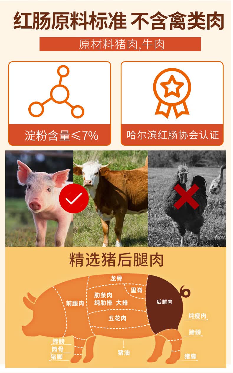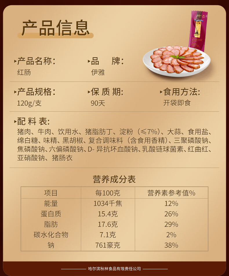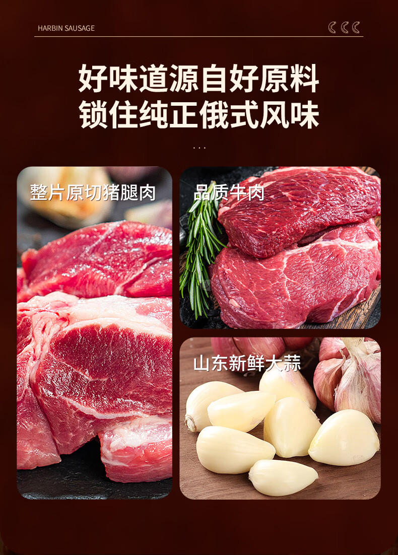 伊雅秋林食品公司哈尔滨红肠1.2kg/10支装 百年老字号 东北特产熟食