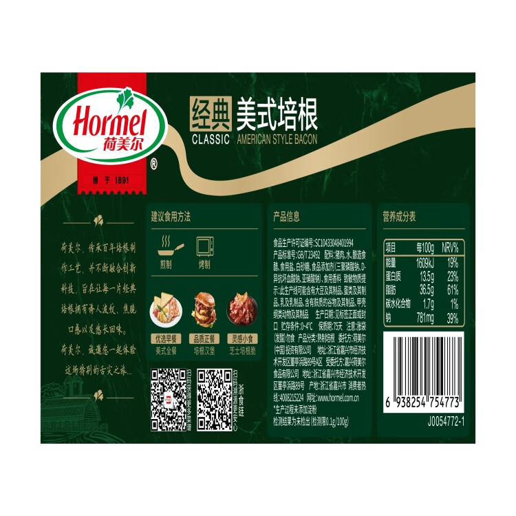 荷美尔(Hormel)经典美式特级培根150g /袋x2 冷藏食品 早餐火锅烧烤披萨食材