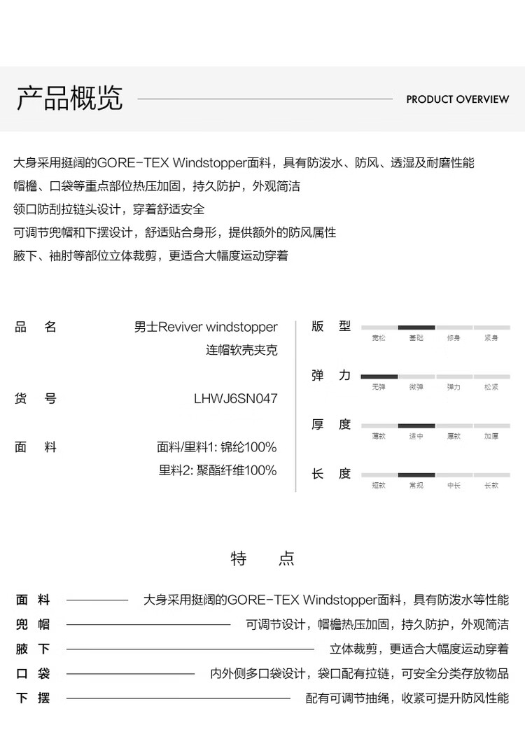 KOLON SPORT/可隆户外软壳衣 男防风透湿GTX windstopper连帽夹克