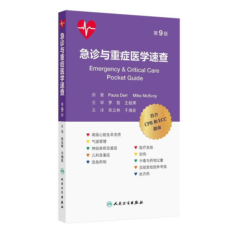 本书第9版修订版以其在急诊医疗界的权威性和实用性,赢得了医生、急救人员和护士的高度评价和广泛使用。这本手册的小巧尺寸使其成为医疗专业人员随身携带的理想选择,确保了在紧急情况下能够快速获取关键信息。随着2023年心肺复苏(CPR)和急诊心脏病学(ECC)指南的更新,该手册也同步进行了全面修订,进一步巩固了其在学术界的地位。本书原著是一本在急诊重症领域广受欢迎的口袋书,主要涵盖了高级气道管理、心肺复苏、高级生命支持、紧急用药、医疗紧急救治、创伤、毒物和药物过量、常见实验室检查、处方药物使用方法等内容。本书为口袋书,内容精炼为示意图、流程图和表格形式,方便携带,侧重于提供快速参考和紧急情况下的实用指导。