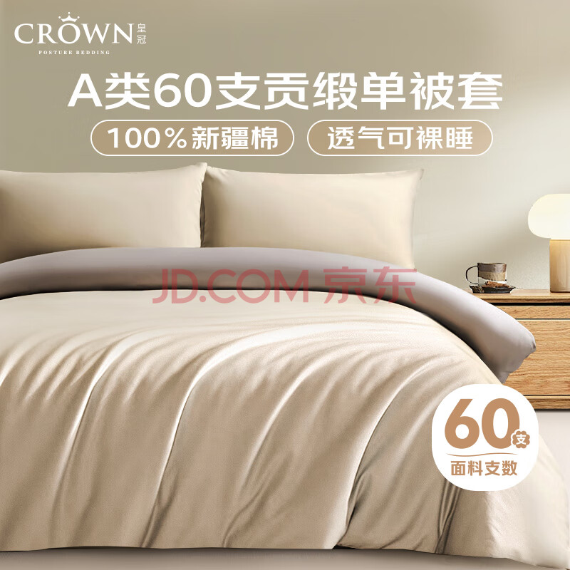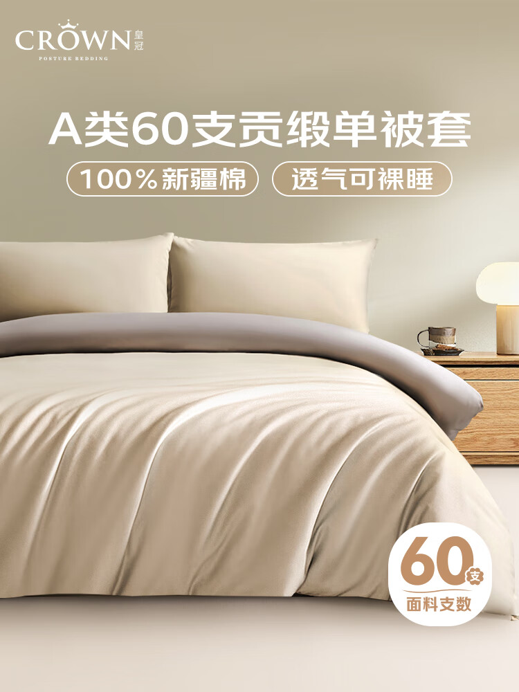 皇冠60支纯棉被套单件全棉床上用品a类学生宿舍单人1.5米x2米床单被罩