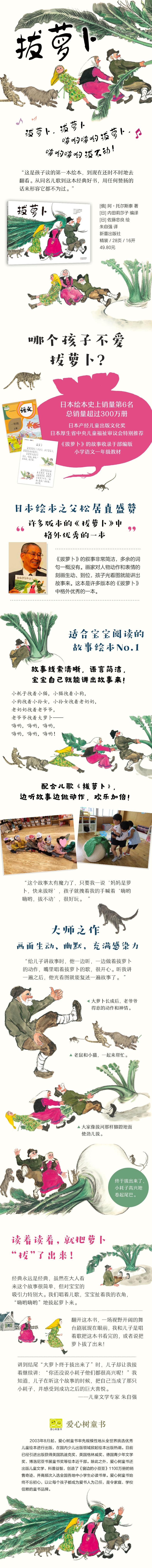 经典永远是经典,虽然在大人看来这个故事很简单,但对宝宝的吸引力特别大:我们还唱起了儿歌,宝宝扯着我的衣角,“嗨哟嗨哟”拔萝卜。——中国读者
