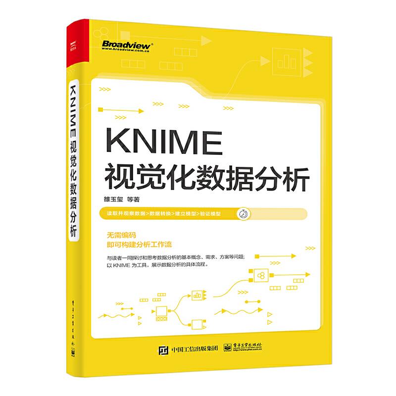 本书与读者一同探讨和思考数据分析的基本概念、需求、方案等问题,并以 KNIME 为工具,展示 数据分析的具体流程。 本书对 KNIME 中的众多节点进行了介绍,对各节点的难度和重要性进行了标记,以便新手更快地 学习,对节点的覆盖性说明和一些高级内容,会让读者更深入地了解和使用KNIME。 对所有日常有数据分析需求的读者来说,本书能帮助其轻松应对大部分常见的数据分析问题,是一本 的 KNIME 使用参考书。 按照当今的流行术语来说,KNIME 是一款通用型的低代码(low code)数据分析软件,也就是 说,它的主要操作方式通过"拖拉曳”就能完成。 本书适合所有日常有数据分析需求的读者,能帮助其轻松应对大部分常见的数据分析问题。
