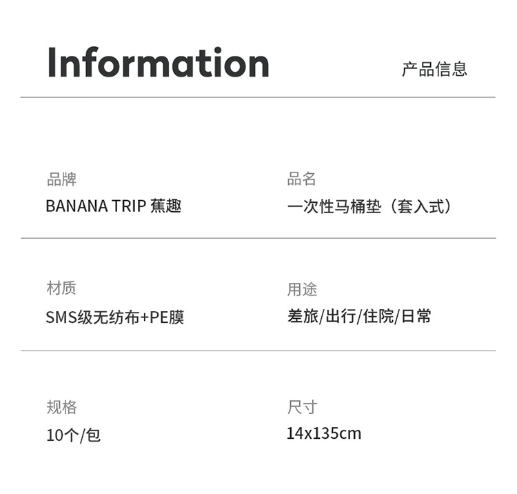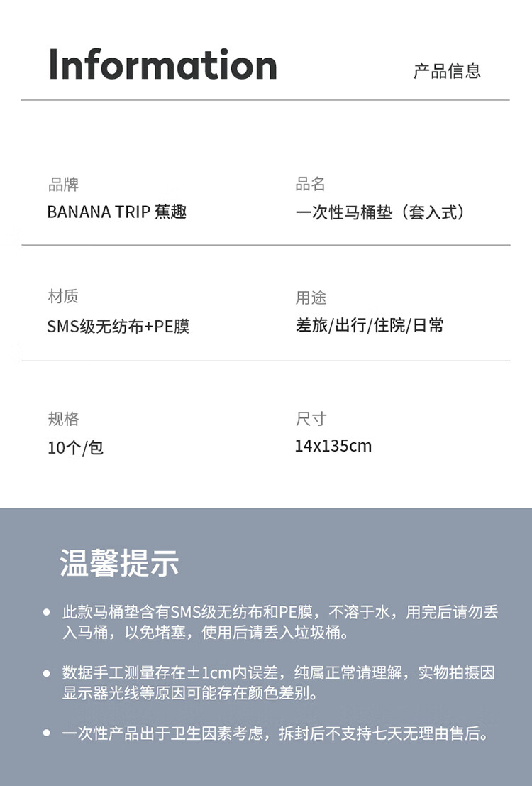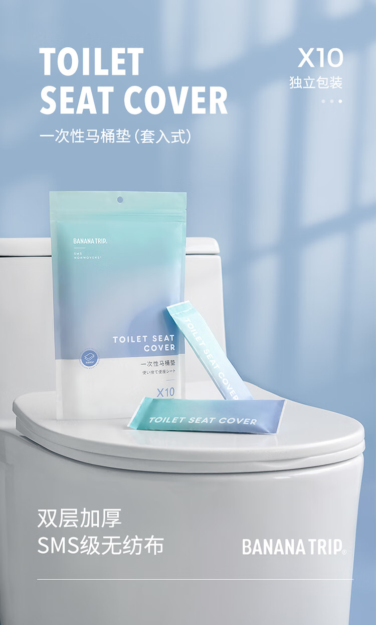 蕉趣(BANANA TRIP)一次性马桶垫 双层加厚(SMS级)无纺布酒店通用隔脏马桶套 10个装